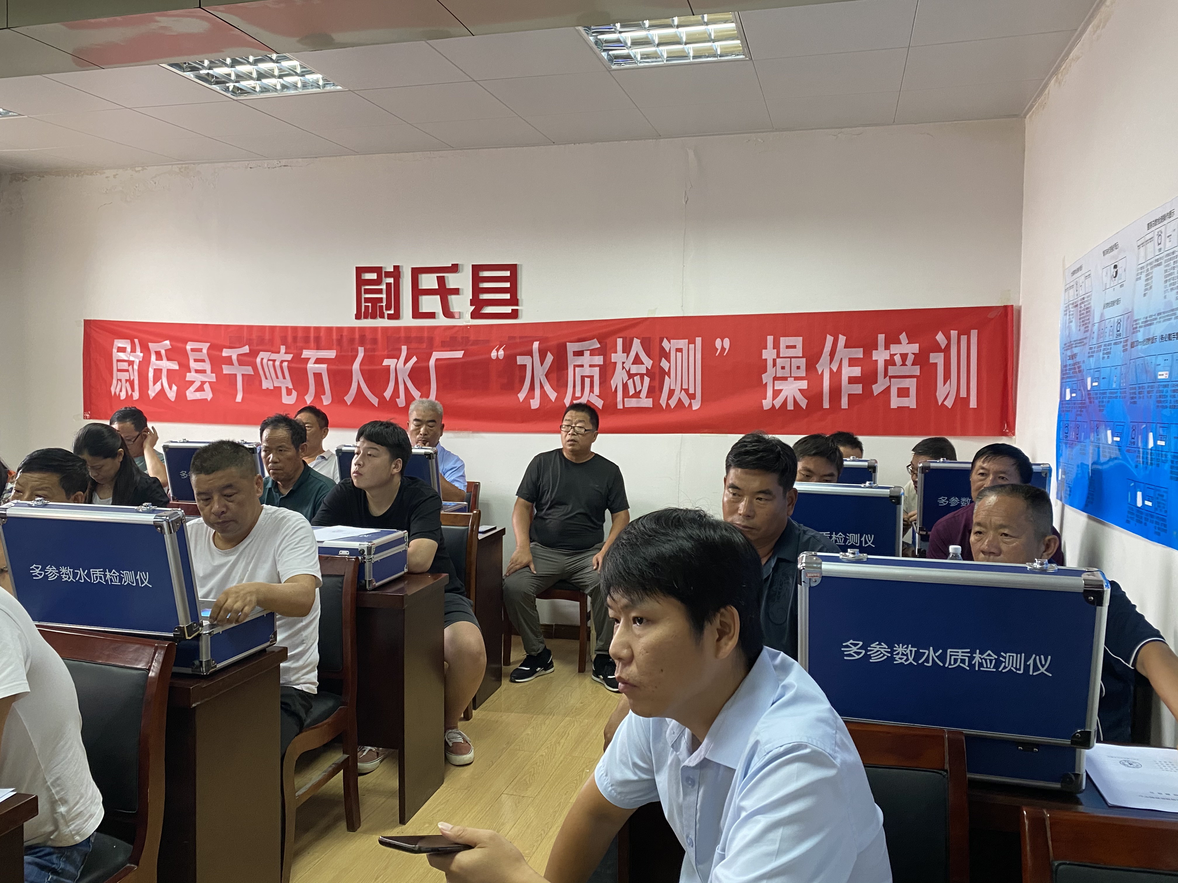 培訓(xùn)人員認(rèn)真聽取多參數(shù)水質(zhì)檢測儀的操作注意事項(xiàng)