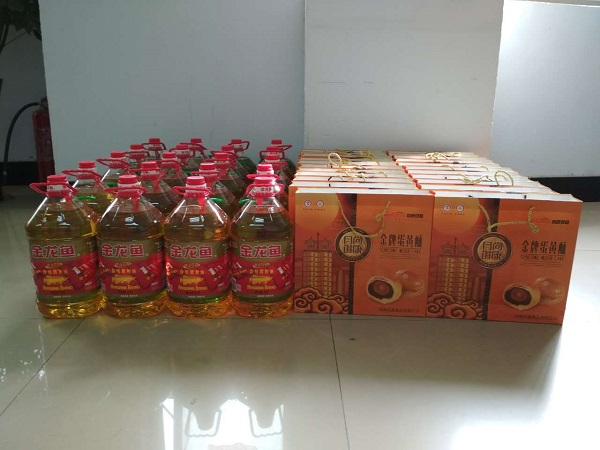 今年國慶節(jié)和中秋節(jié)正好是趕到了一起,所以公司領(lǐng)導(dǎo)也是提前準(zhǔn)備了節(jié)日福利,為大家送去祝福。今年的福利包括一桶食用油和一盒金牌蛋黃酥月餅,充分體現(xiàn)了公司領(lǐng)導(dǎo)對(duì)員工的關(guān)心和祝福。