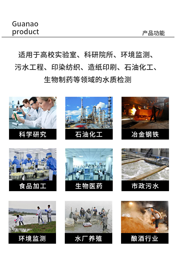 GA-COD COD測(cè)定儀可快速準(zhǔn)確測(cè)定地表水、地下水、城市污水及工業(yè)廢水中的COD,濃度直讀;可廣泛用于水廠、食品、化工、冶金、環(huán)保及制藥行業(yè)等部門。