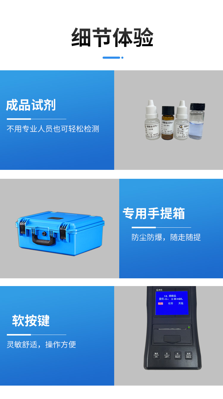 磷酸鹽水質(zhì)檢測(cè)儀主要用于飲用水中的磷酸鹽參數(shù)的測(cè)定。本儀器可廣泛用于水廠、養(yǎng)殖、環(huán)保等行業(yè),是常用的戶外及實(shí)驗(yàn)室常用儀器。