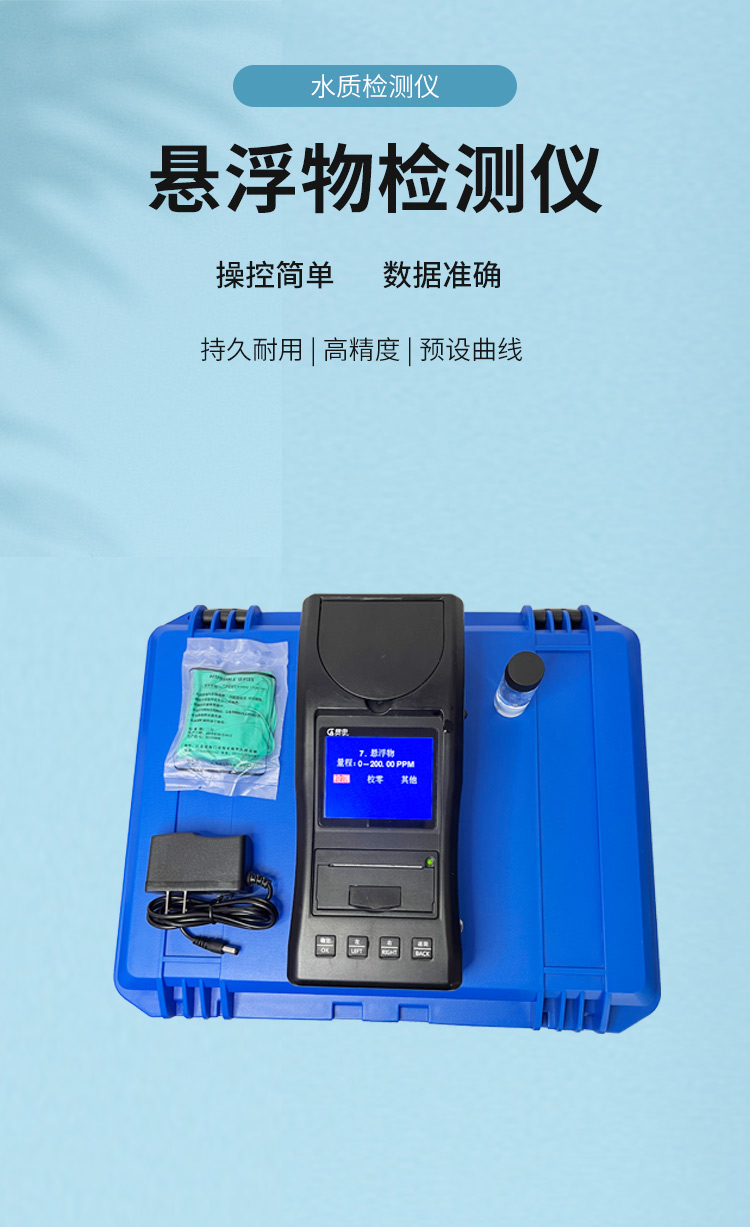水中懸浮物是指顆粒直徑約在10-0.1μm之間的顆粒,肉眼可見,主要由水中的泥沙、原生動物、高分子有機物、水生物等物質組成。懸浮物是造成水渾濁的主要原因,它在厭氧發(fā)酵后會使水質惡化,因此它是衡量水質污染程度的重要指標之一。而在一些工業(yè)廢水和城鎮(zhèn)污水的水質檢測中也特別為總固體做出了規(guī)定。